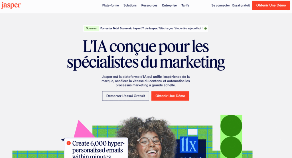 - Résultats prouvés : +100 000 entreprises font confiance à Jasper
